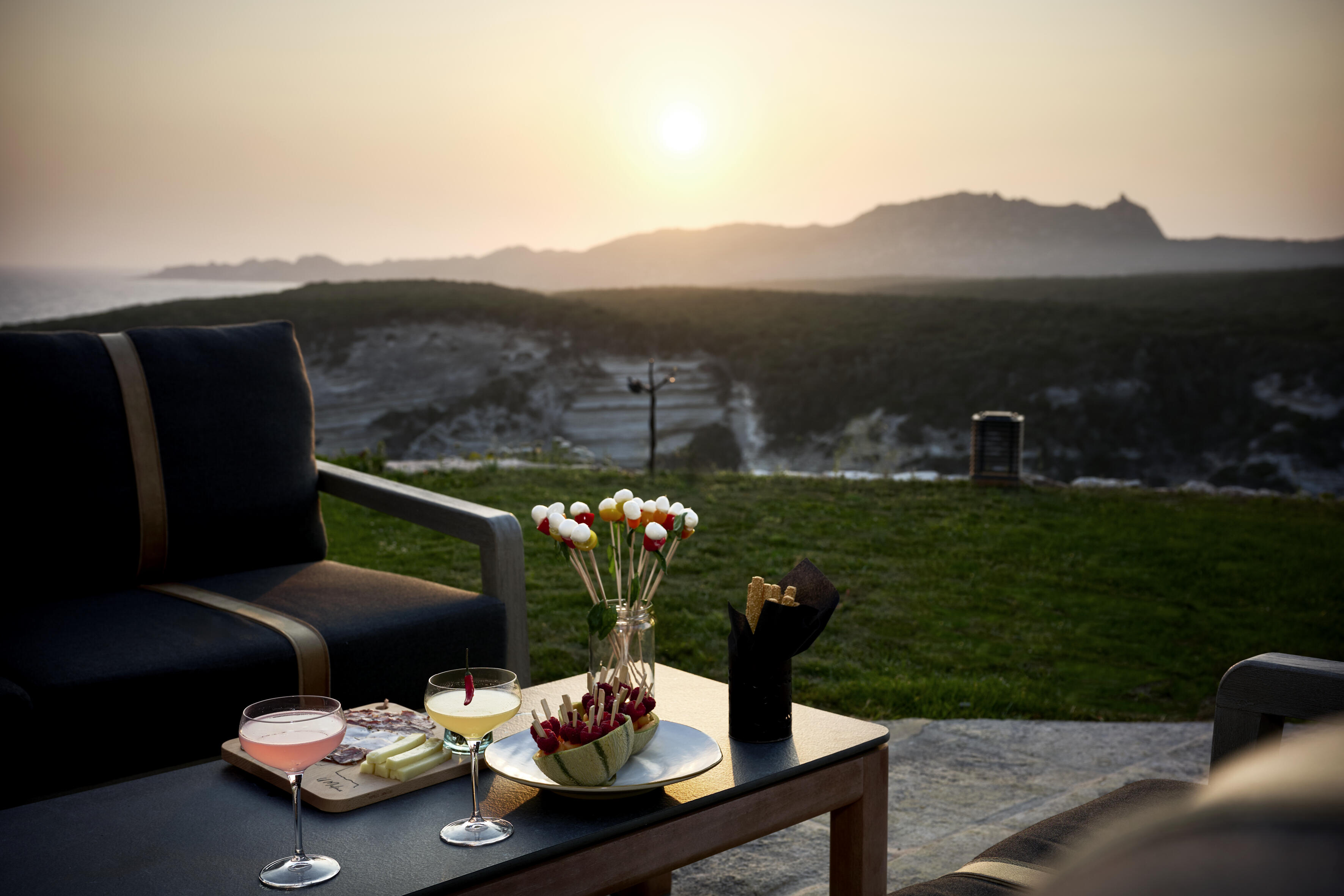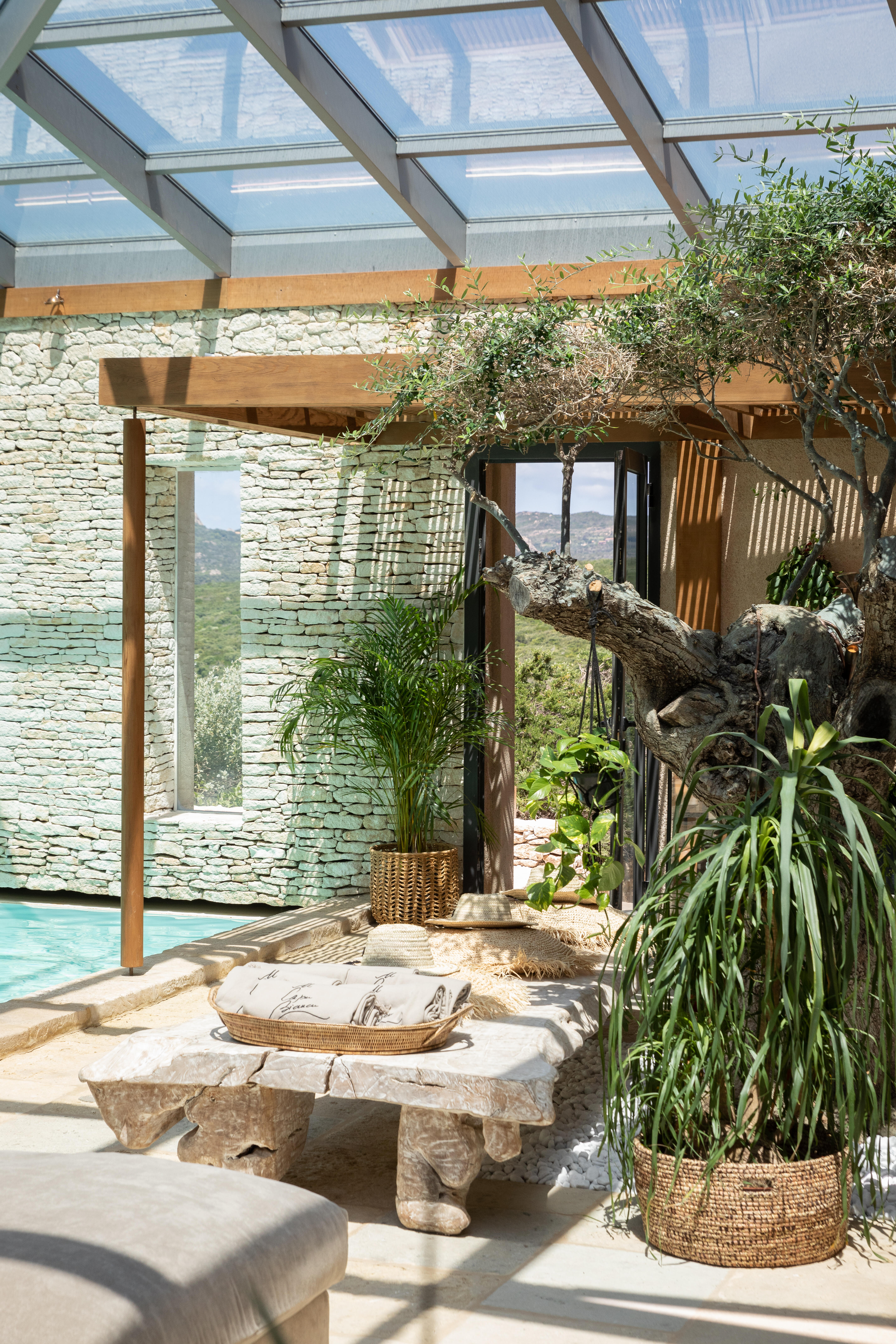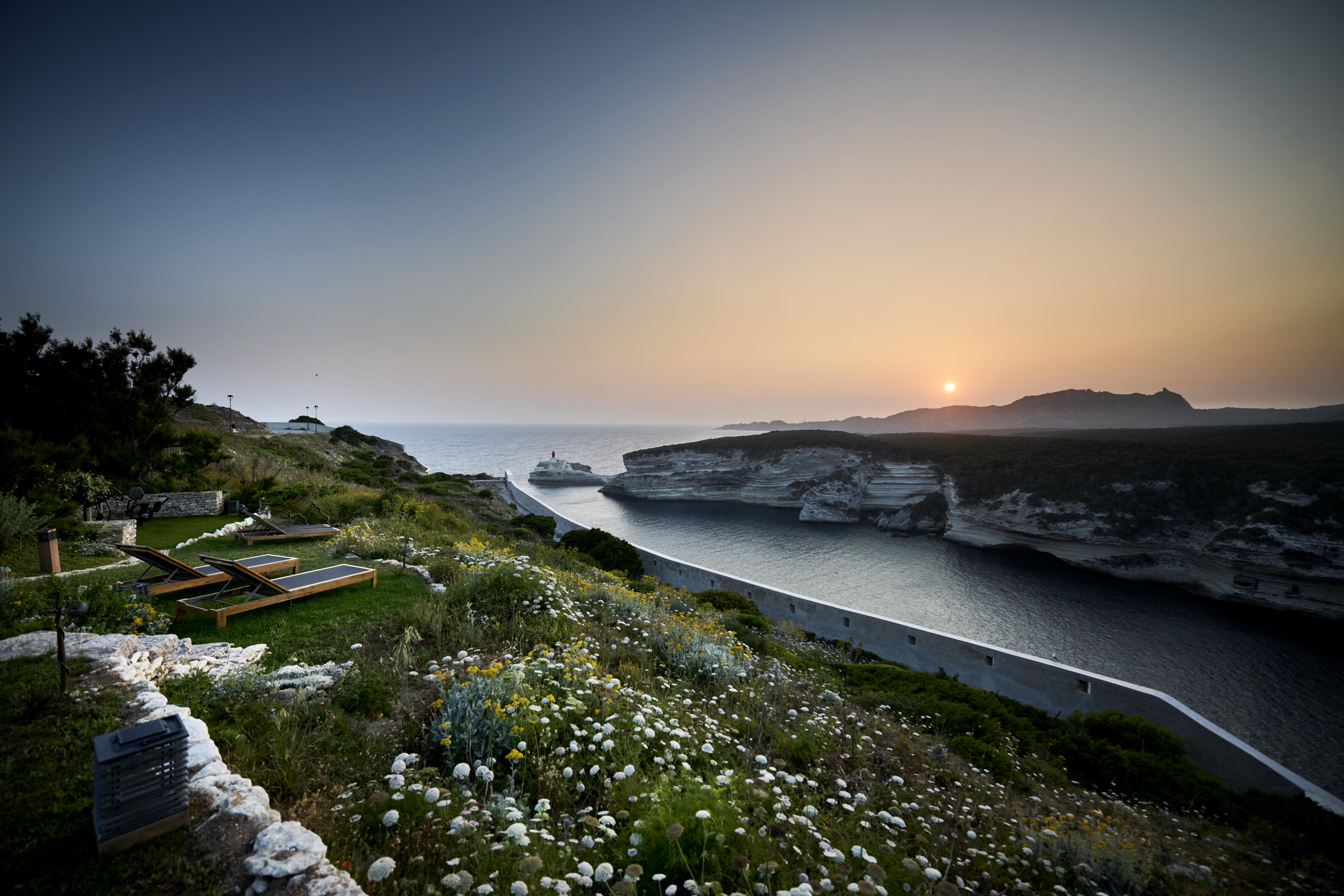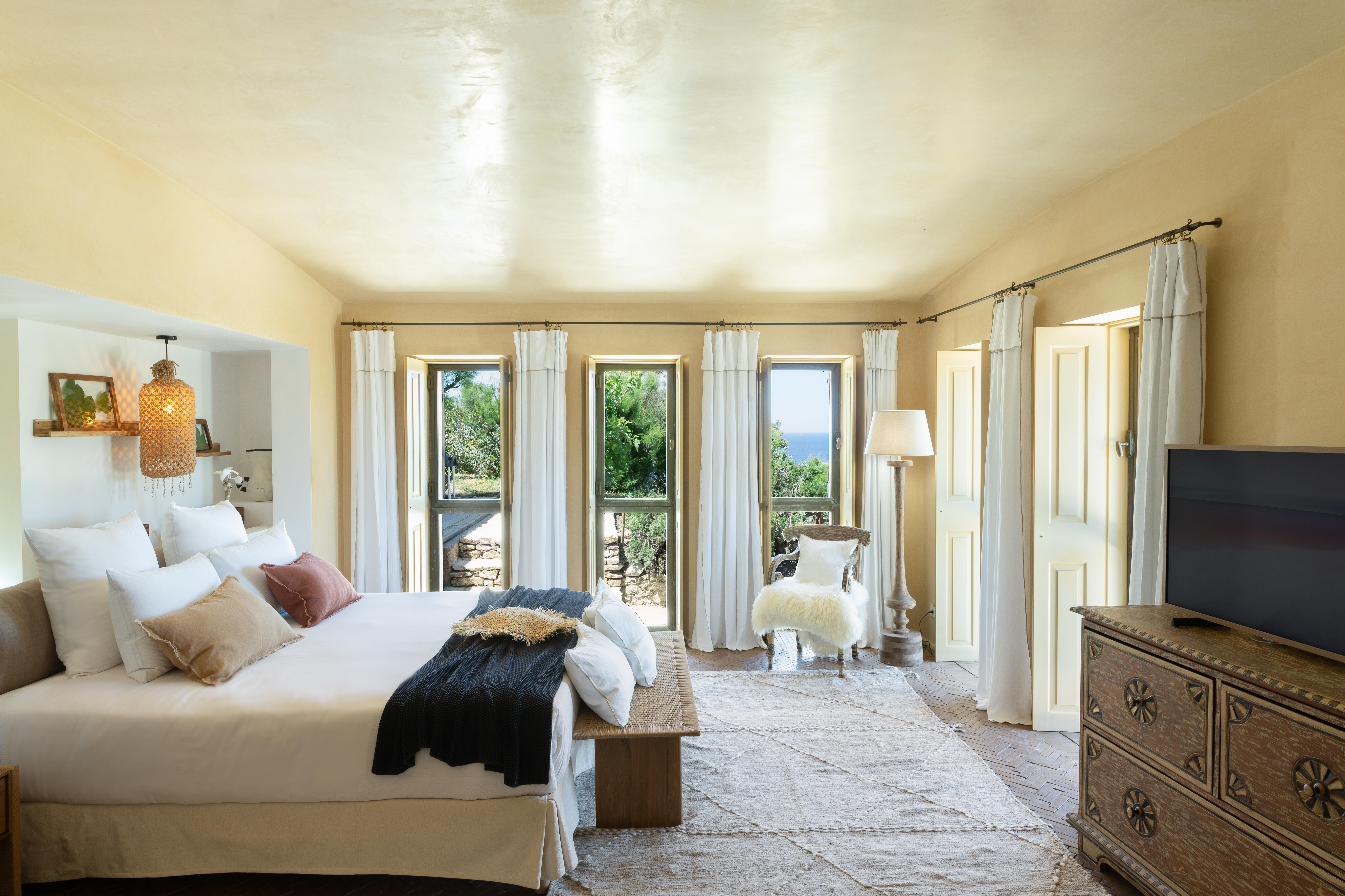 Elle est la plus secrète du trio. La plus intimiste. On y accède par un chemin et des escaliers intérieurs. Des tons clairs et chaleureux, un luxe réconfortant, cette suite est un véritable cocon. Face à elle, le Bastion et la plage de l’Arinella racontent la douceur de vivre bonifacienne.