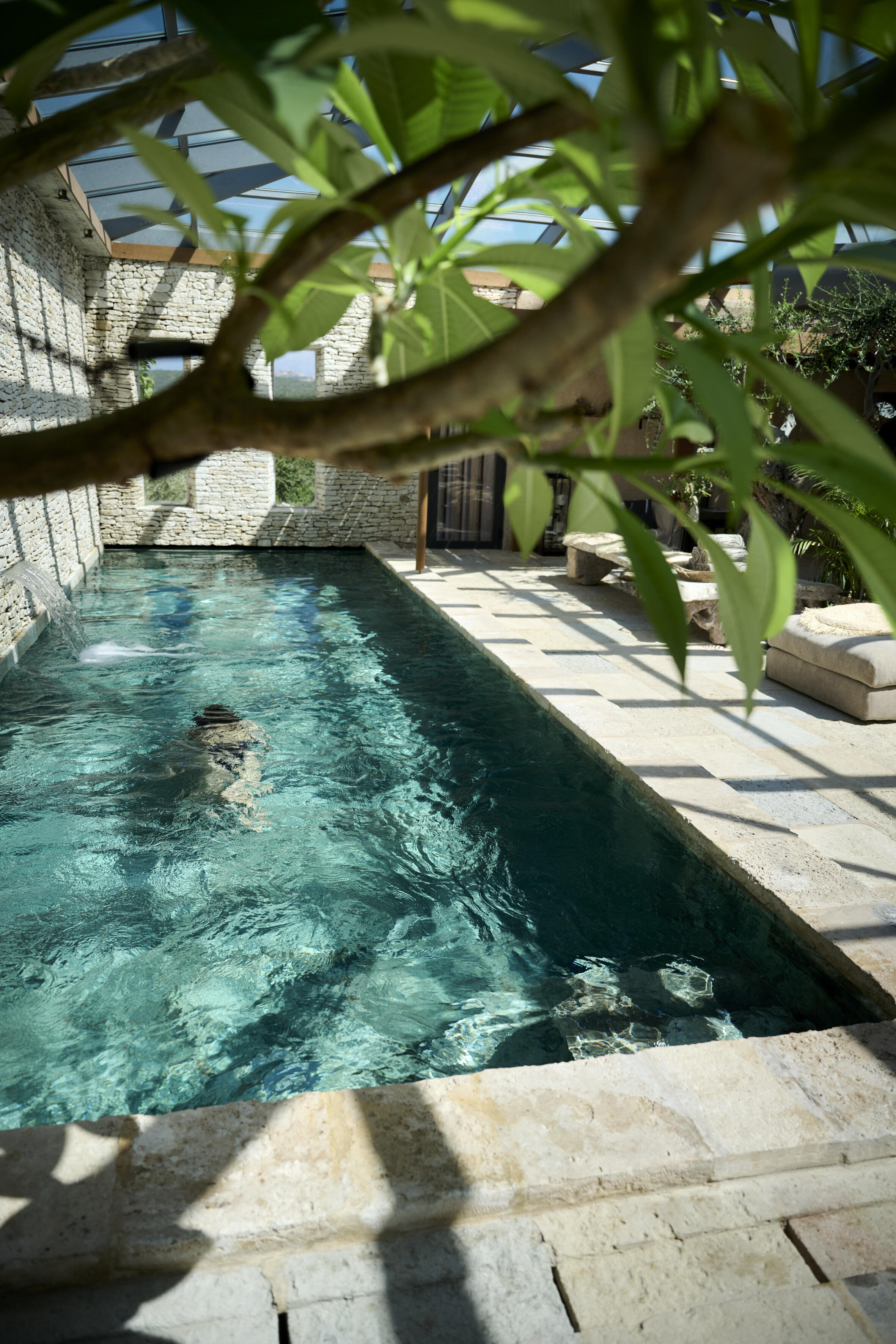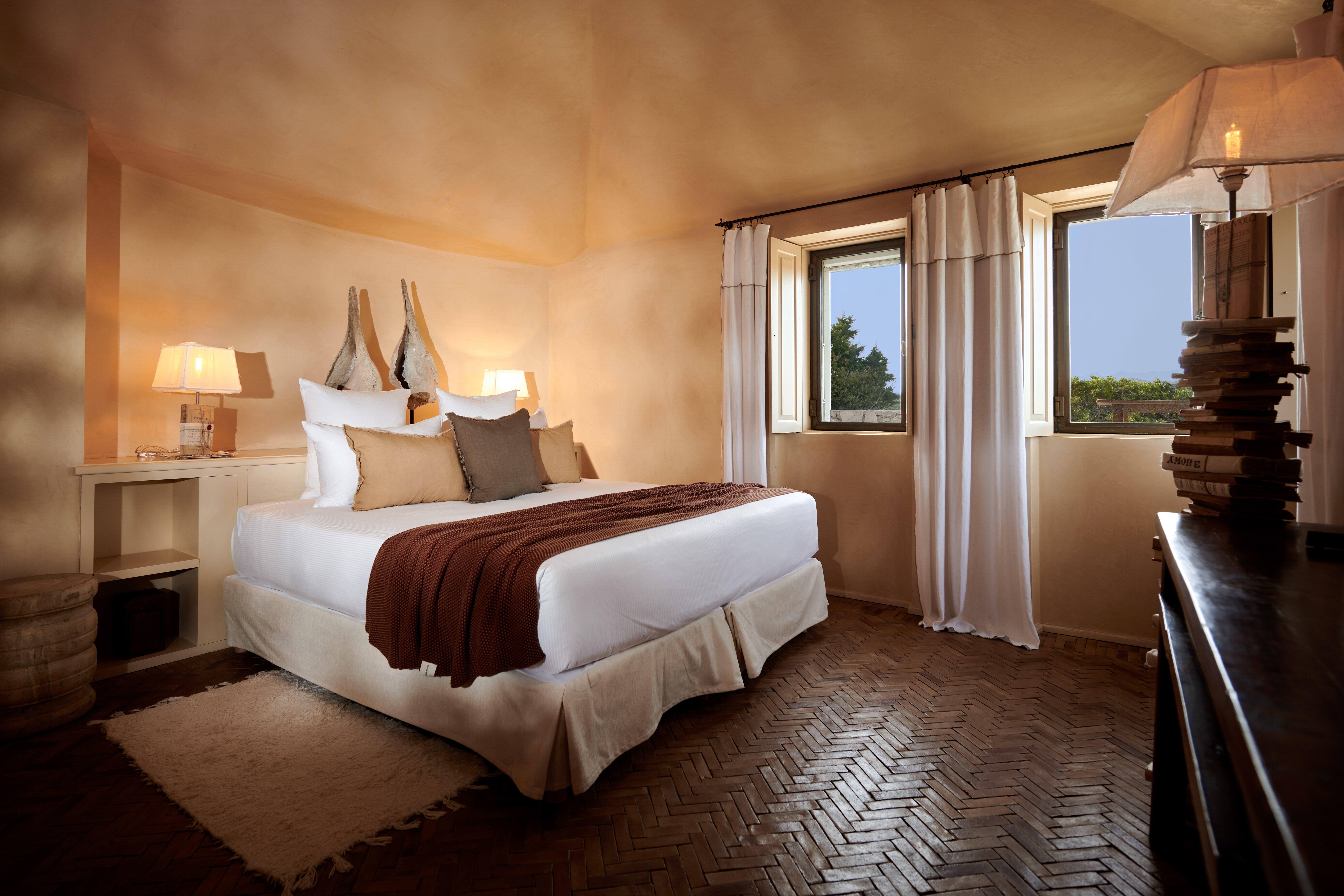 Son nom, cette suite le doit à son orientation vers les escaliers du Roy d'Aragon. Leur présence, là-bas, derrière les remparts de Bonifacio, lui confère une aura particulière : ici, pas de télévision, mais juste à côté, une bibliothèque pour se plonger dans l’histoire. Une piscine intérieure qui se dessine derrière la fenêtre. Et des nuances d’une douceur extrême.
